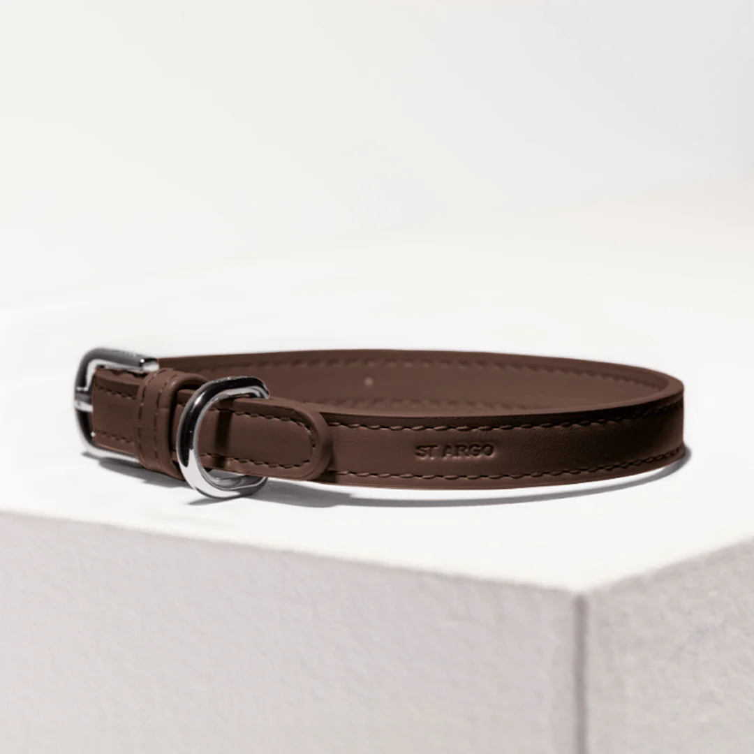 Everyday walks start with considered design. The Cocoa collar is crafted for comfort, durability, and ease, in a rich chocolate brown. Made from our buttery soft, lightweight cruelty free vegan leather, it sits comfortably on your dog’s neck while maintaining its structured shape. Designed to pair effortlessly with the rest of the ST ARGO range, it’s an everyday staple to accompany you and your dog wherever walks may take you.