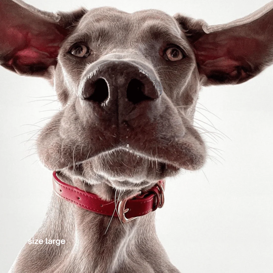 A crowd favourite, re-released each Christmas and known to sell out every time. Our Ruby Red collar features a deep, cranberry red with a brightness that catches the light beautifully. Crafted from our signature cruelty free vegan leather and finished with polished gold hardware, it brings a festive richness that still feels refined. Designed as a seasonal statement, but timeless enough to wear well beyond the holidays.