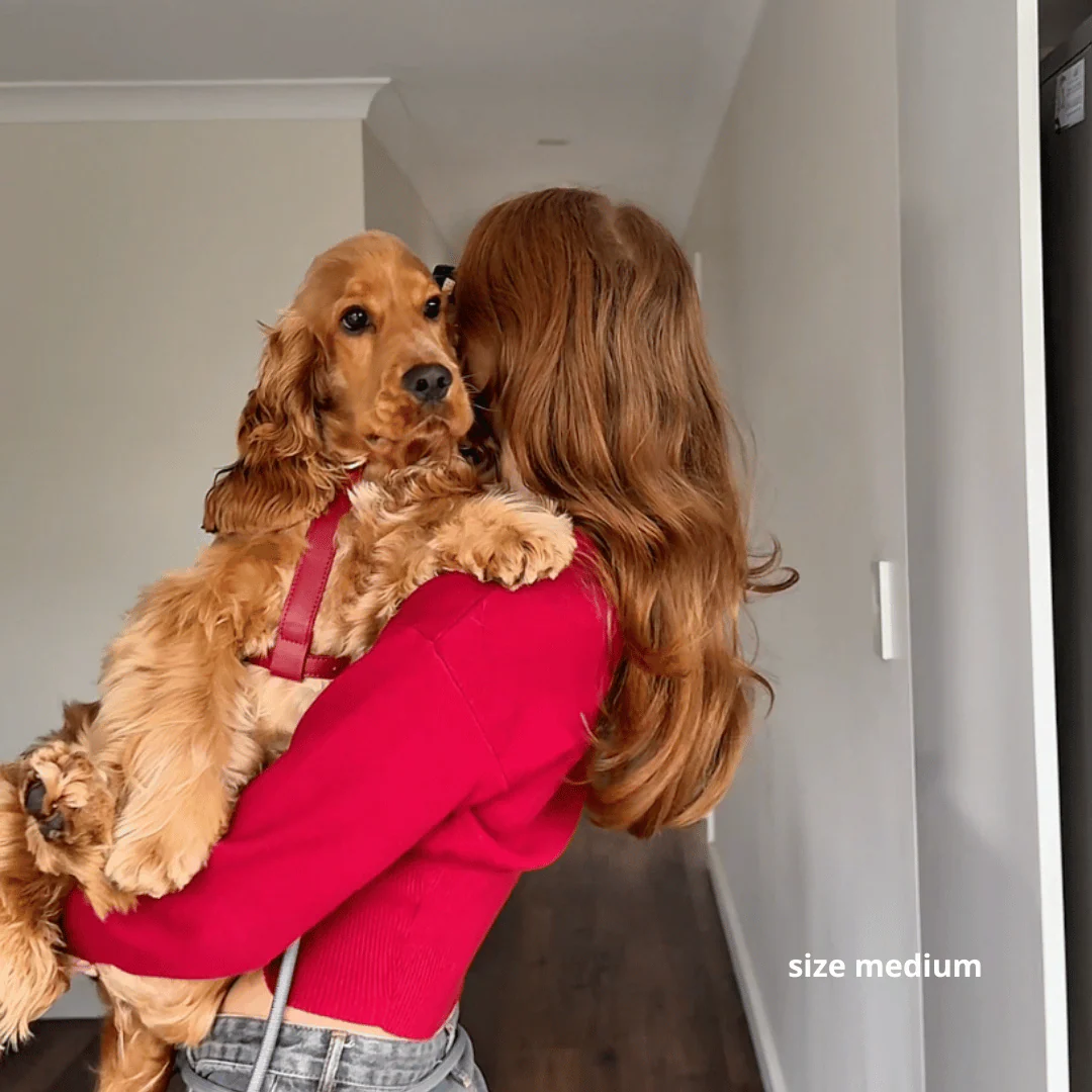 A lightweight, no pull harness designed for comfort and control. Crafted with a smooth cruelty-free PU leather exterior and a softly pebbled offset lining, it feels gentle against your dog’s chest while maintaining a clean, structured look. Our non-restrictive design slips easily over the head, with fully adjustable chest straps for a secure, tailored fit. Easy on, easy off, and comfortable for everyday wear. Chic, understated, and made to move.